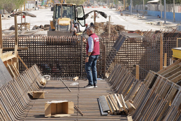 Ángel Torres, secretario de Obras Públicas del Estado, realizó una visita de seguimiento a la construcción del paso a desnivel Torre Chiapas, donde constató el avance de este emblemático proyecto que mejorará la conectividad de la zona metropolitana.