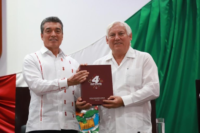 Al presentar su Cuarto Informe de Gobierno ante el Congreso del Estado, el gobernador Rutilio Escandón Cadenas aseguró que la consolidación de un gobierno democrático hoy se refleja con estabilidad política, respeto a los derechos humanos y la dignidad de las personas, lo que constituye un verdadero Estado de Derecho que está concretando la Cuarta Transformación que se da pacíficamente en tiempos de reconciliación, austeridad y justicia.