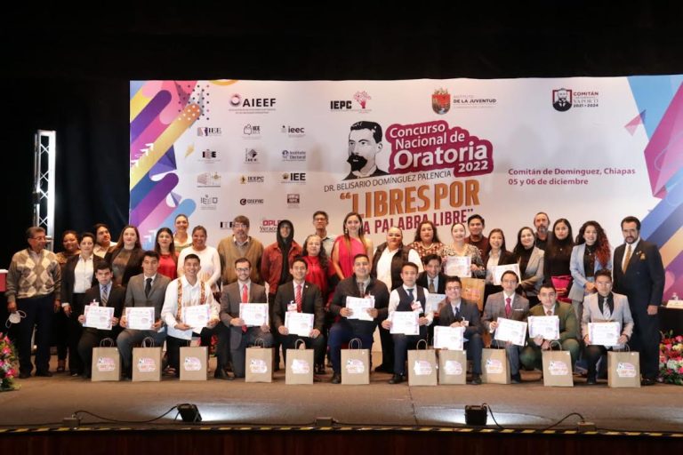A iniciativa de la Asociación de Instituciones Electorales de las Entidades Federativas (AIEEF), en coordinación con el Instituto de Elecciones y Participación Ciudadana (IEPC) de Chiapas, el Instituto Estatal de la Juventud del estado (IJECH) y el Ayuntamiento de Comitán de Domínguez, se llevó a cabo el Concurso Nacional de Oratoria 2022 “Dr. Belisario Domínguez Palencia. Libres por la palabra libre”, durante los días 05 y 06 de diciembre, teniendo como sede el Teatro Junchavín, con la participación de 15 concursantes de los estados de Baja California, Baja California Sur, Campeche, Chiapas, Chihuahua, Hidalgo, Jalisco, Nayarit, Puebla, Querétaro, San Luis Potosí, Sinaloa, Tabasco, Tlaxcala y Veracruz.
