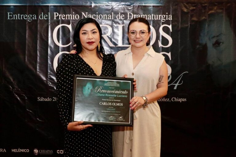 Tapachula de Córdova y Ordóñez, Chiapas.- El Consejo Estatal para las Culturas y las Artes de Chiapas (Coneculta) entregó el Premio Nacional de Dramaturgia Carlos Olmos 2024 a Diana Rossette Luciano por la obra Jaguar, amparado con el seudónimo Claudia Cachat, marcado con el número 02 de la lista.