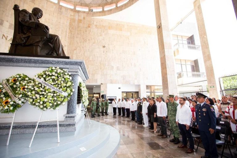 En la ceremonia cívica efectuada en el Hemiciclo a Juárez del edificio Legislativo, la líder del parlamento en Chiapas dio la bienvenida a los asistentes y recalcó -en torno al ilustre Benemérito de Las Américas-, que: “La historia viva de nuestro país tiene presente a grandes hombres y mujeres, quienes con su lucha pensamiento y resistencia fueron cambiando nuestro destino, hasta tener hoy un estado libre y soberano y un México consolidado en leyes e instituciones, producto de un ideario que hasta la fecha está presente y debe perdurar siempre”.