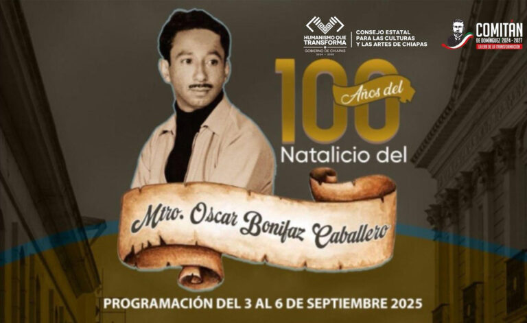 El Consejo Estatal para las Culturas y las Artes de Chiapas (Coneculta), en coordinación con el Ayuntamiento de Comitán de Domínguez, conmemorarán del 3 al 6 de septiembre el centenario del natalicio del escritor chiapaneco, Oscar Bonifaz Caballero (4 de septiembre de 1925-16 de mayo de 2023).
