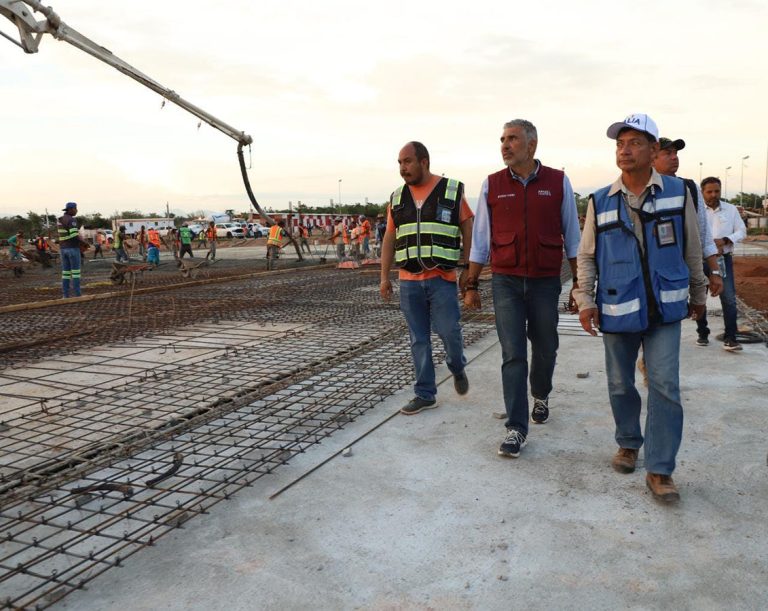 En el marco de una visita de seguimiento a la construcción de la Plataforma y Hangar de Carga en el “Aeropuerto Internacional Ángel Albino Corzo (AIAAC)”, en el municipio de Chiapa de Corzo, el secretario de Obras Públicas, Ángel Torres, informó que actualmente se trabaja en el colado de más de mil metros cuadrados con concreto hidráulico.