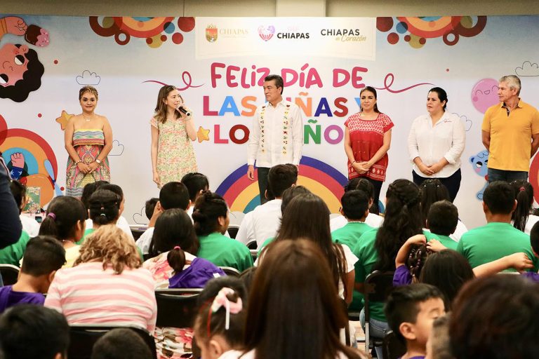 Al encabezar la celebración del Día de la Niña y el Niño, el gobernador Rutilio Escandón Cadenas aseguró que todos los días se trabaja para atender a la niñez chiapaneca con el objetivo de garantizar sus derechos e impulsar su bienestar.