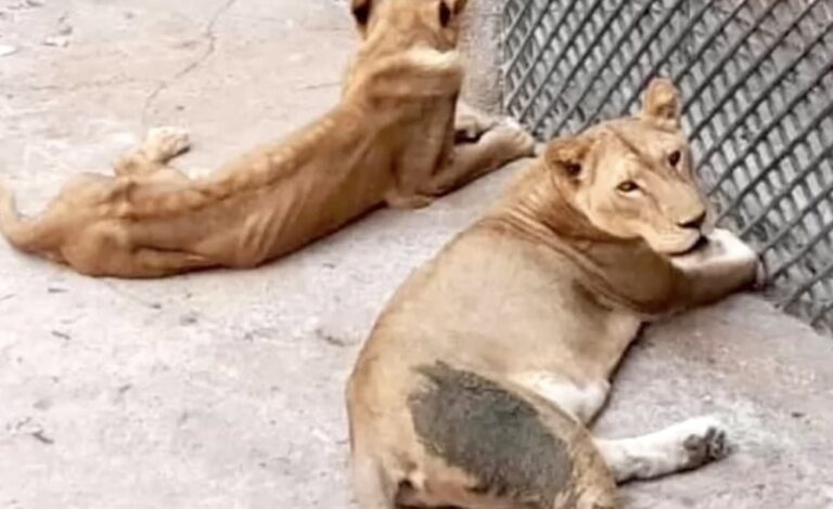 Orantes Abadía reportó que los ejemplares presentan signos evidentes de desnutrición, así como heridas visibles en la piel, situación que pone en riesgo su salud y bienestar. Los leones, con aproximadamente 20 años de edad, aparentemente no reciben alimentación ni atención adecuada desde hace tiempo.