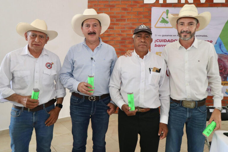 Como parte de las acciones preventivas, Barba Arrocha entregó kits para la toma de muestras de larvas del gusano barrenador y pidió reportar cualquier caso a los teléfonos: 800 751 2100 y WhatsApp: 55 3996 4462 o al correo electrónico: gestioncpa.dgsa@senasica.gob.mx