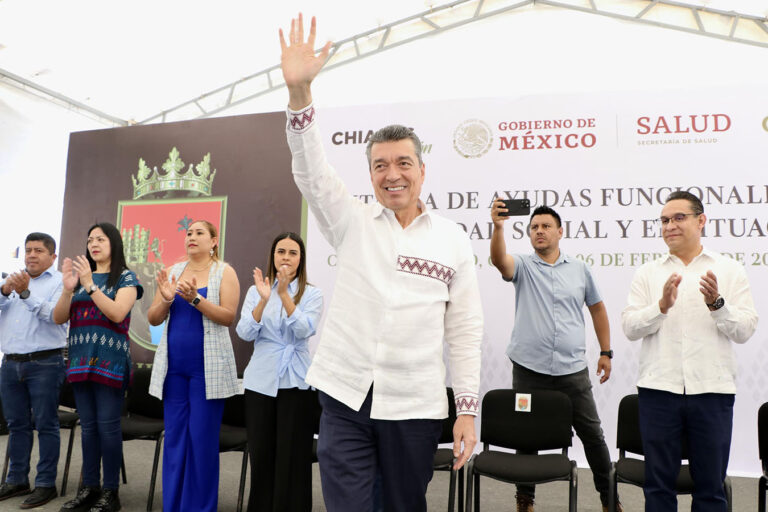 Como parte de las acciones que coadyuven a la inclusión social para que las personas con discapacidad se incorporen al ámbito productivo y mejoren su calidad de vida, el gobernador Rutilio Escandón Cadenas encabezó la entrega de ayudas funcionales en beneficio de 355 chiapanecas y chiapanecos carentes de seguridad social y en situación de vulnerabilidad, de los municipios de Acala, Berriozábal, Chiapa de Corzo, Emiliano Zapata, Nicolás Ruiz, San Lucas, Suchiapa y Venustiano Carranza.