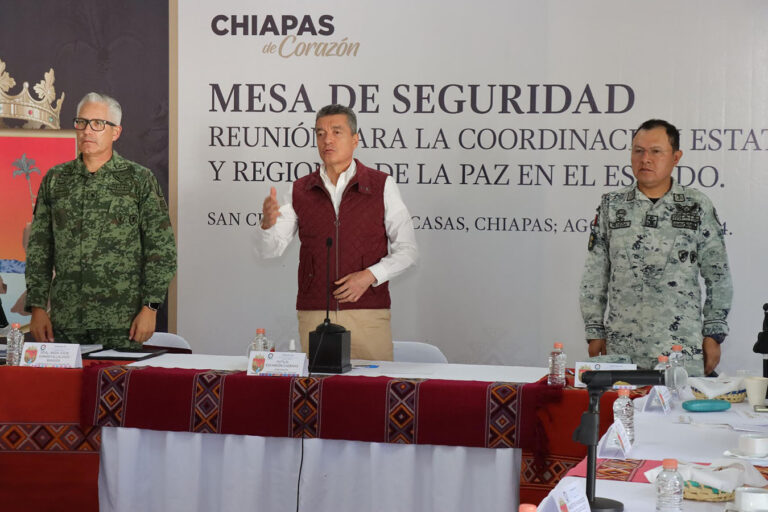 En San Cristóbal de Las Casas, el gobernador Rutilio Escandón Cadenas encabezó la Mesa de Coordinación Estatal para la Construcción de la Paz y la Seguridad, donde informó que, de acuerdo a con el pronóstico meteorológico, van a continuar las lluvias moderadas en Chiapas, sobre todo en los municipios de las regiones Soconusco, Istmo Costa, Sierra, Norte, De Los Bosques, Tulijá Tseltal Chol y Mezcalapa.