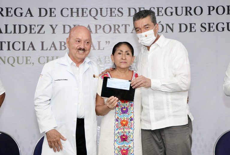 En el municipio de Palenque, el gobernador Rutilio Escandón Cadenas entregó al personal de salud cheques de seguro por jubilación, defunción, invalidez y de aportación de seguro individual, con lo que se hace justicia laboral a las trabajadoras y trabajadores de este sector que han puesto su vocación y profesionalismo al servicio del pueblo chiapaneco.