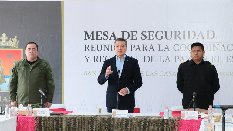 Durante la Mesa de Coordinación Estatal para la Construcción de la Paz y la Seguridad, realizada en San Cristóbal de Las Casas, el gobernador Rutilio Escandón Cadenas informó que, en las últimas horas, el frente frío número 33 causó bajas temperaturas, intensas lluvias y fuertes ráfagas de viento en la entidad, por lo que reiteró el llamado a la población a no bajar la guardia y continuar con las recomendaciones preventivas de protección civil.