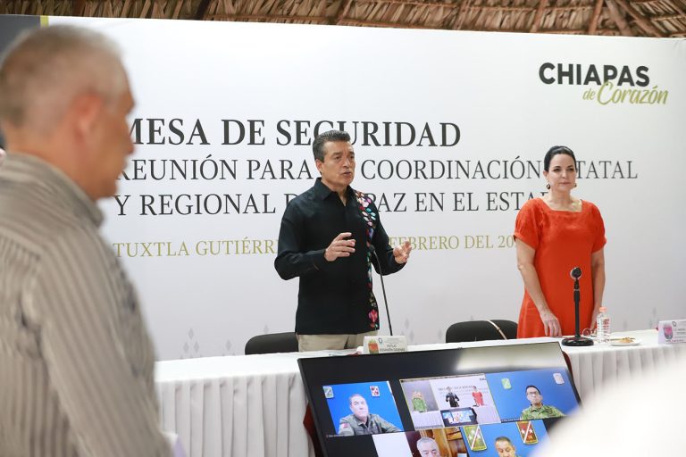 Durante la Mesa de Coordinación Estatal para la Construcción de la Paz y la Seguridad, el gobernador Rutilio Escandón Cadenas reconoció las acciones encabezadas por la Secretaría de Igualdad de Género (Seigen), que se realizan de manera territorial en las comunidades para fortalecer el bienestar, la protección y el respeto a los derechos humanos y garantizar una vida libre de violencia a las mujeres, adolescentes y niñas chiapanecas.
