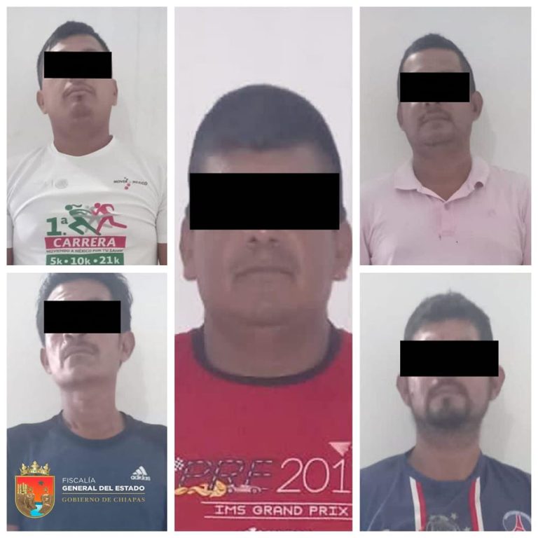 Tuxtla Gutiérrez, Chis., 07 SEP.-La Fiscalía General del Estado (FGE) a través de la Fiscalía de Distrito Istmo Costa ejecutó orden de aprehensión en contra de cinco personas por su probable responsabilidad en el delito de Robo Ejecutado con Violencia y Agravado, en el municipio de Acapetahua, Chiapas.