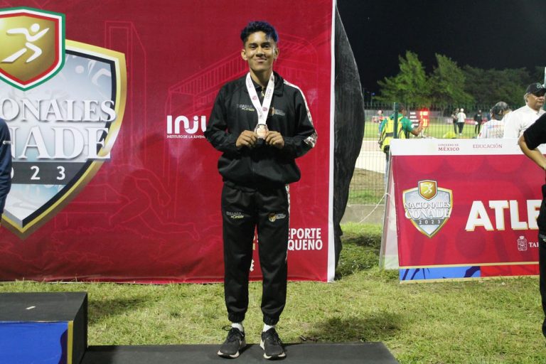 El pertegista, Eduardo Alonso Cameras Díaz, subió al pódium logrando adjudicarse la medalla de bronce al establecer un salto de 4 metros en la disciplina de Salto con Garrocha, dentro de los Nacionales Conade 2023, justa que se está realizando sobre la pista de atletismo “Olimpia 21” en Villahermosa, Tabasco, sumando así nuestro estado la medalla número 73.