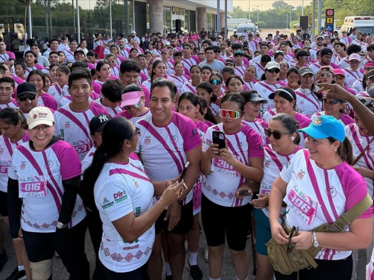 En el marco del Día Mundial contra el Cáncer de Mama, el gobernador Eduardo Ramírez Aguilar participó en la Tercera Carrera Contra el Cáncer de Mama, organizada por la Jurisdicción Sanitaria VI Selva y el Ayuntamiento de Palenque, con el objetivo de sensibilizar a la población sobre la importancia de la detección temprana y recordar que un diagnóstico oportuno puede salvar vidas.