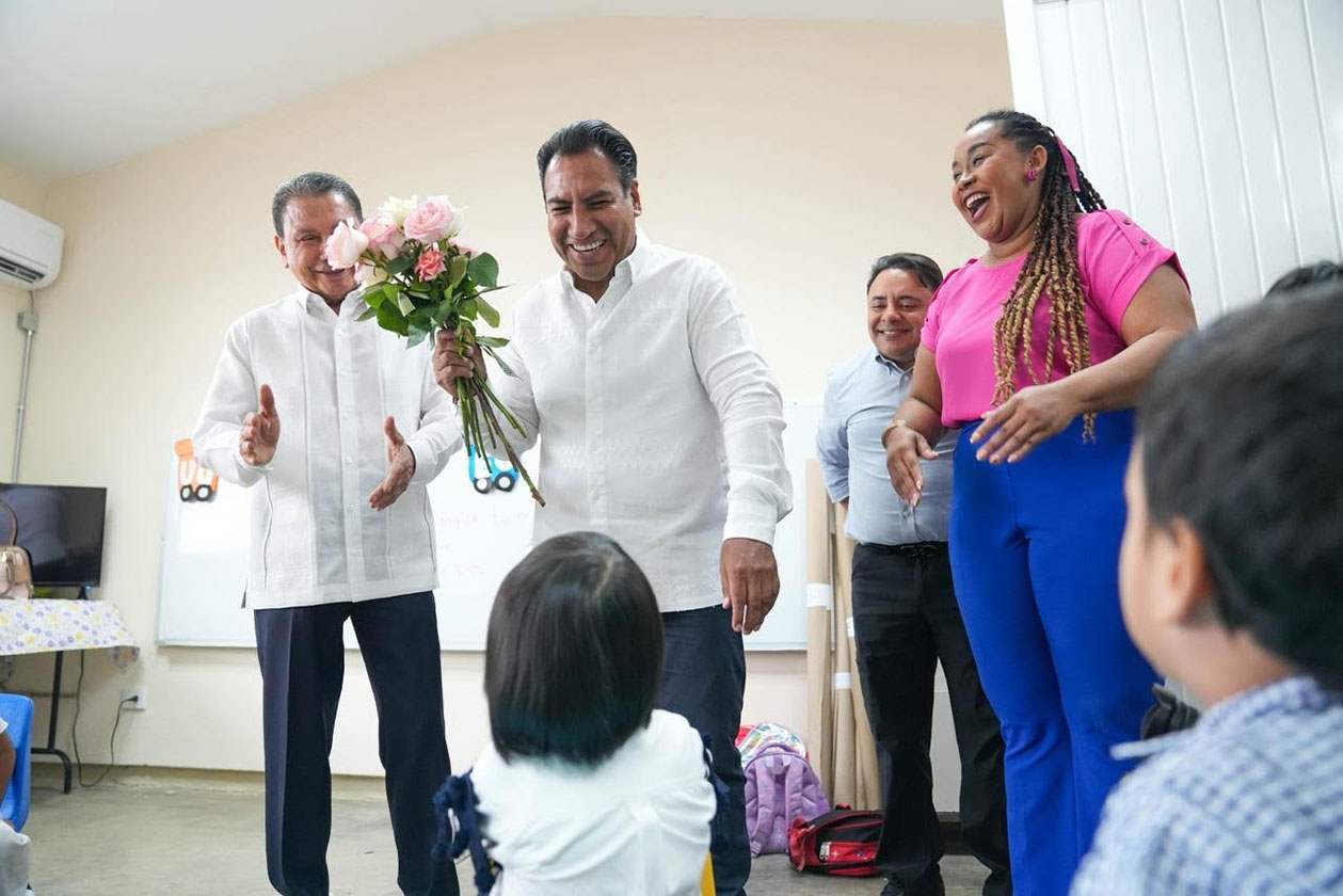 En este sentido, Moreno Guillén acudió a la inauguración de obras en el Jardín de Niños “Beatriz Ordóñez Acuña” y en la Escuela Primaria “Emiliano Zapata Salazar”, encabezadas por el gobernador del estado, Eduardo Ramírez Aguilar, y el director general del Inifech, Carlos Ildefonso Jiménez Trujillo.