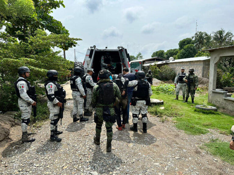 09 de octubre de 2023.- La Secretaría de la Defensa Nacional, a través de las Comandancias de la VII Región Militar y 30/a. Zona Militar, hace del conocimiento que en el marco de la Estrategia Nacional de Seguridad Pública y de la Política de Cero Impunidad, el 8 de octubre del presente año, personal de la Guardia Nacional, Ejército Mexicano y la Comisión Nacional Antisecuestro (CONASE), policía de investigación y policía estatal realizaron la liberación de 8 personas privadas de su libertad, además de la detención de 5 personas a quienes se les aseguró armamento, posible droga y vehículos en Pichucalco, Chiapas.