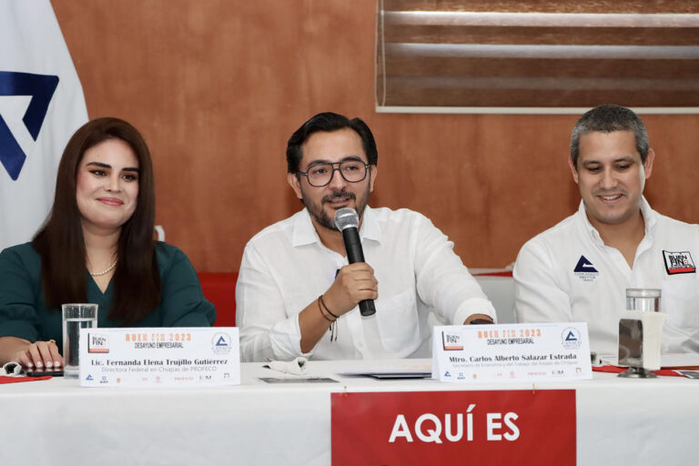 Con la finalidad de acompañar al sector empresarial, comerciantes y a consumidores chiapanecos en la 13ª edición de El Buen Fin 2023, que se llevará a cabo del 17 al 20 de noviembre, desde Tapachula, el secretario de Economía y del Trabajo (SEyT), Carlos Salazar Estrada, sostuvo una reunión con los socios y cúpula empresarial del Consejo Directivo de la Cámara Nacional de Comercio, Servicios y Turismo de Tapachula y la Frontera Sur, que preside Jorge Zúñiga Rodríguez.