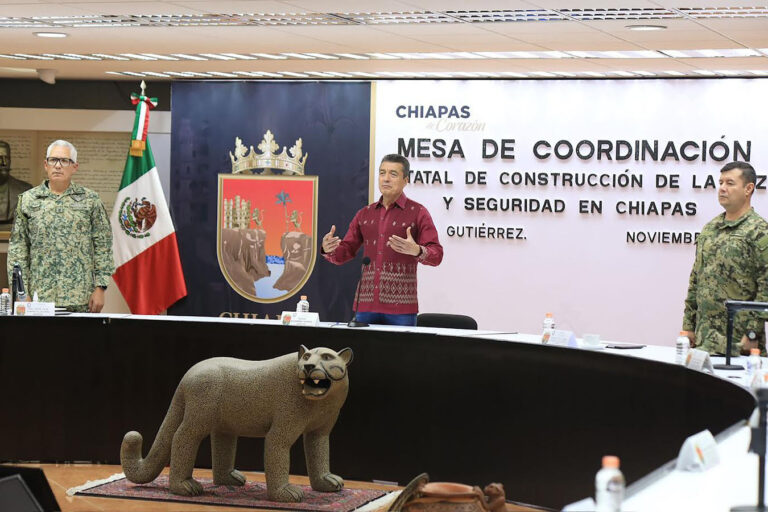 En el marco de la Mesa de Seguridad, el gobernador reconoció al Ejército Mexicano, la Marina, Guardia Nacional, a las corporaciones federales, estatales y municipales de Seguridad, Protección Civil, Derechos Humanos, Migración, representantes de los Programas Integrales de Desarrollo, entre otras instancias, por su compromiso de trabajar a favor de por la paz, la tranquilidad y la justicia en Chiapas.
