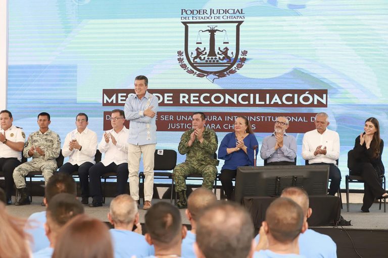 “Somos testigos de un acto más de justicia de la labor humanista de la Mesa de Reconciliación a favor de las personas privadas de su libertad, tal como se inició aquel 9 de mayo del 2013, dando pauta a que en Chiapas se continúe fortaleciendo estos trabajos para cambiar historias de vida. Hoy quienes reciben una segunda oportunidad tendrán las herramientas para tejer una nueva historia, por lo que les pido que la conserven y valoren con responsabilidad”, manifestó.