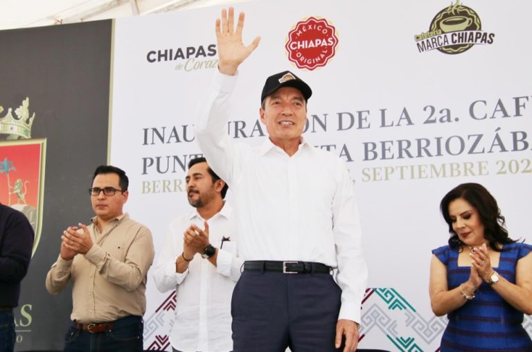 En Berriozábal, el gobernador Rutilio Escandón Cadenas inauguró la segunda Cafetería Marca Chiapas, donde destacó que este tipo de cafetería constituye una gran estrategia comercial, porque además de fortalecer la economía a través del surgimiento de empresas locales, contribuye a la comercialización de bebidas y alimentos, textiles, artesanías, joyería y otros productos de alta calidad, que son realizados con dedicación, cuidado y la creatividad de las y los chiapanecos.