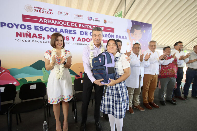En tanto, la directora general del Sistema DIF Chiapas, Karina Martínez López, detalló que en el ciclo escolar 2023-2024 el beneficio llegó a más de 13 mil estudiantes de nivel básico, sin embargo, en este ciclo 2024-2025 se incrementó, por lo que se entregarán 15 mil 981 mochilas con útiles escolares a 8 mil 204 niñas y niños de primaria y 7 mil 777 adolescentes de secundaria.