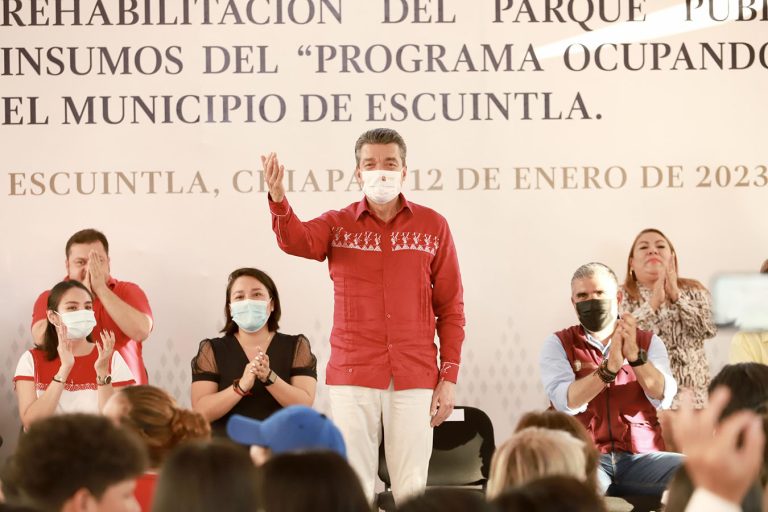 El gobernador Rutilio Escandón Cadenas inauguró el Parque Público en el ejido El Triunfo, municipio de Escuintla, por lo que ahora las familias de esta localidad cuentan con un espacio adecuado para convivir de manera armoniosa y segura.