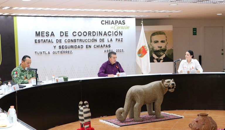 “La presencia de María Mandiola en esta Mesa de Seguridad es muy importante porque nos permite conocer dónde tenemos que estar con mayor presencia para proteger a las niñas y mujeres, sobre todo en esta tarea de prevención porque lo más importante es que no suceda ningún acto de violencia de género, así podamos vivir en paz y sacar adelante el progreso de Chiapas, porque si todos nos tratamos con respeto será más fácil alcanzar un verdadero estado de bienestar”, apuntó.