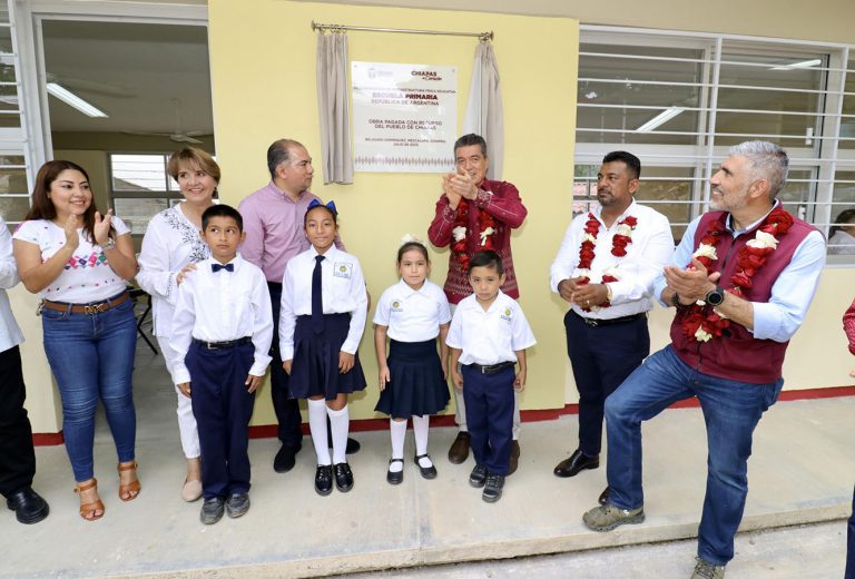 Al inaugurar la reconstrucción de infraestructura educativa de la Escuela Primaria República de Argentina, de la localidad Belisario Domínguez, en Mezcalapa, el gobernador Rutilio Escandón Cadenas destacó que la educación es fundamental para fortalecer el bienestar y el índice de desarrollo humano de los pueblos, por ello su gobierno invierte en este rubro para garantizar a estudiantes, docentes y madres y padres de familia, espacios escolares dignos, funcionales y seguros.
