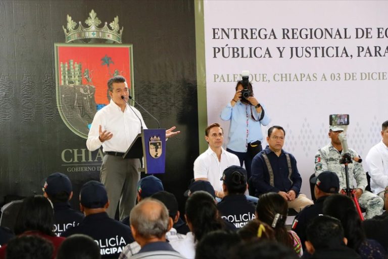 Al entregar patrullas, motopatrullas, uniformes y equipamiento a instituciones de seguridad y justicia de Palenque, Sitalá, Chilón, Yajalón, Tila y Ocosingo, el gobernador Rutilio Escandón Cadenas sostuvo que, gracias a las inversiones en este rubro y al esfuerzo entre las autoridades, Chiapas se ha consolidado como una de las entidades más pacíficas, con mayor perspectiva de crecimiento económico y con un verdadero estado de bienestar.