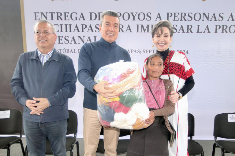 “Es satisfactorio estar con ustedes, sentir las raíces y la grandeza ancestral de nuestras culturas milenarias que nos dan identidad ante el mundo a través del trabajo artesanal. Hoy cumplimos nuestro compromiso de apoyar el trabajo que, con sus manos llenas de magia y talento, realizan para dar vida a los colores y la alegría que caracterizan a las comunidades de Chiapas”, expresó.