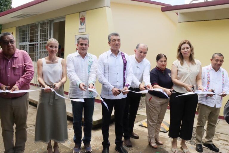Como parte de su gira de trabajo por Tapachula, el gobernador Rutilio Escandón Cadenas inauguró la construcción y rehabilitación de espacios en el Centro de Atención Múltiple (CAM) Benito Juárez García, que brinda atención a niñas y niños con discapacidad auditiva y problemas de lenguaje, en los niveles de intervención temprana, preescolar y primaria.