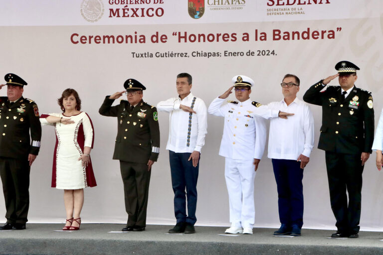 Tras entonar el Himno Nacional Mexicano y el Himno a Chiapas, y presenciar el izado de la Bandera de México, Escandón Cadenas reconoció que además de enaltecer el orgullo de ser mexicano, estas actividades también contribuyen a la construcción de una sociedad donde se privilegia la paz, la convivencia fraternal y el Estado de Derecho.