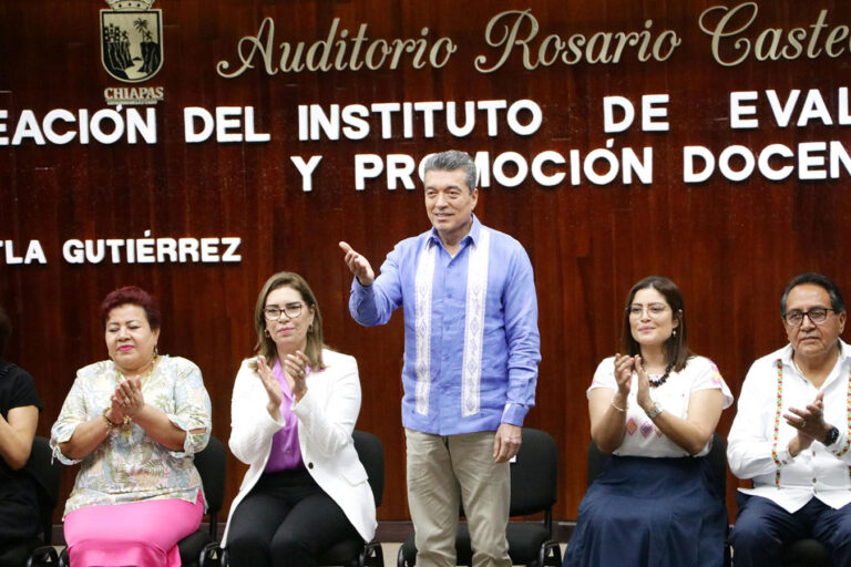 Al atestiguar la creación del Instituto de Evaluación, Profesionalización y Promoción Docente de Chiapas, el gobernador Rutilio Escandón Cadenas destacó que este nuevo organismo público, constituye un paso importante en materia educativa porque garantiza la formación y el crecimiento continuo de maestras y maestros en servicio, en condiciones de equidad e igualdad que les permita un mejor desarrollo profesional en las diferentes funciones y contextos educativos.