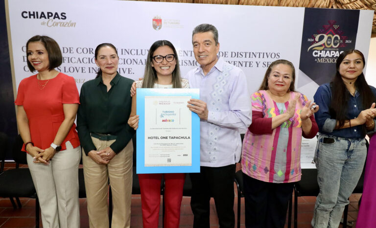 El gobernador Rutilio Escandón Cadenas entregó distintivos de Certificación Nacional en Turismo Incluyente y sellos Chiapas Love Inclusive a empresas y organizaciones prestadoras de servicios turísticos, estrategias que buscan que el estado se consolide como un destino más inclusivo y accesible para el turismo local, nacional y extranjero.