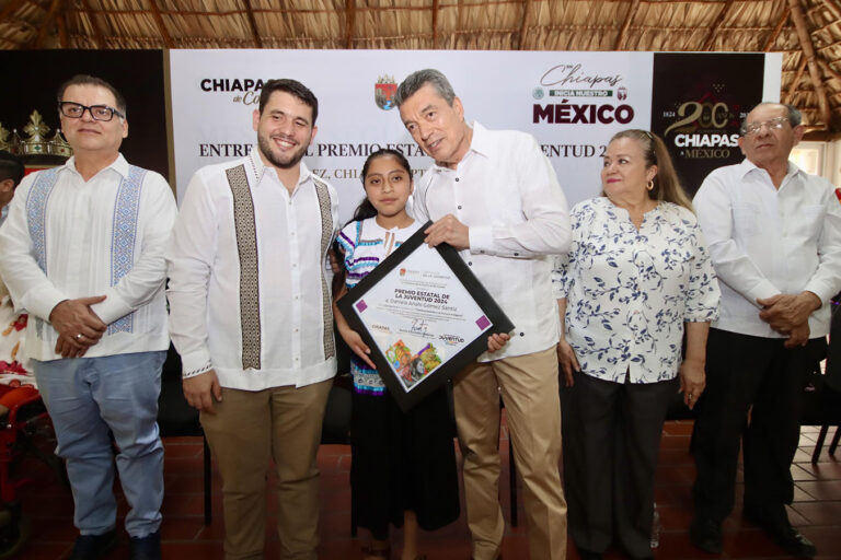 “Estoy orgulloso de ser parte de esta ceremonia y otorgar estos galardones a las y los jóvenes que con su talento y capacidad reafirman el compromiso con la construcción de un Chiapas más justo, equitativo e incluyente. La juventud chiapaneca se ha convertido en agente de cambio, porque mediante su esfuerzo y dedicación impulsan acciones sensibles e innovadoras en diferentes rubros que contribuyen a la atención de quienes más lo necesitan”, apuntó.