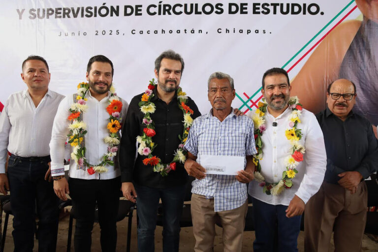 El secretario de Educación, Roger Mandujano Ayala, y el director general del Instituto Chiapaneco de Educación para Jóvenes y Adultos (Icheja), Sergio David Molina Gómez, realizaron una intensa gira de trabajo por tres municipios de la región Soconusco, para entregar Becas «Rosario Castellanos» y dar puntual seguimiento a los Círculos de Estudio para la Alfabetización del programa Chiapas Puede.