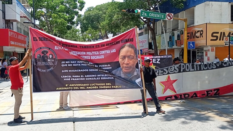 Tuxtla Gutiérrez, Chis., 12 de agosto de 2025 — Más de 300 integrantes del Movimiento Campesino Regional Independiente (MOCRI-CNPA-EZ) marcharon este miércoles por las calles de Tuxtla Gutiérrez para exigir justicia por el asesinato de su líder, Andrés Jiménez Pablo, ocurrido hace ocho años.