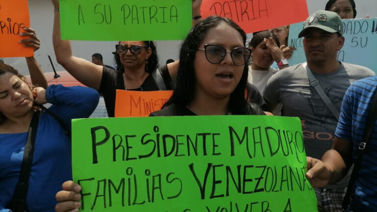 Hombres, mujeres y familias completas se manifestaron con pancartas y consignas, haciendo un llamado directo al presidente de Venezuela, Nicolás Maduro, para que les brinde asistencia humanitaria. “Somos familias venezolanas, queremos volver a nuestro país, estamos en Tuxtla, Chiapas”, expresaron durante la protesta.
