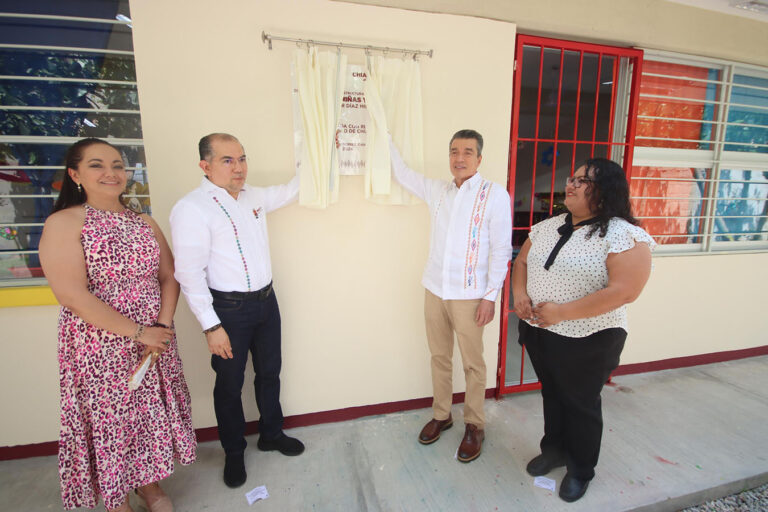 Con aulas dignas y adecuadas se favorece a la formación preescolar y de convivencia de la comunidad escolar del Jardín de Niñas y Niños “Salvador Díaz Mirón”, ubicado en la colonia Pluma de Oro de Tuxtla Gutiérrez.