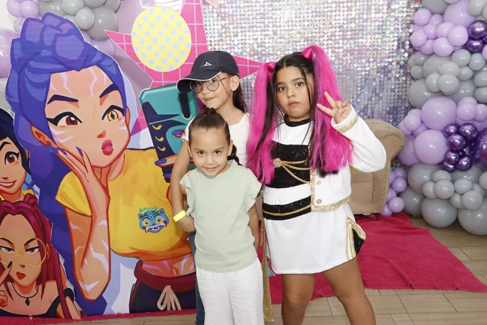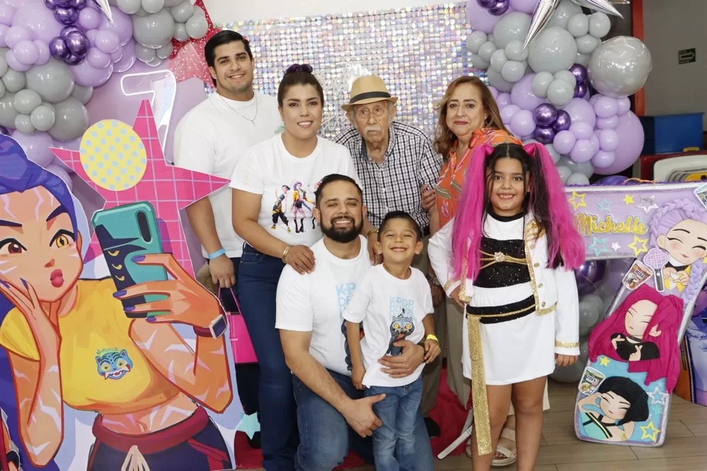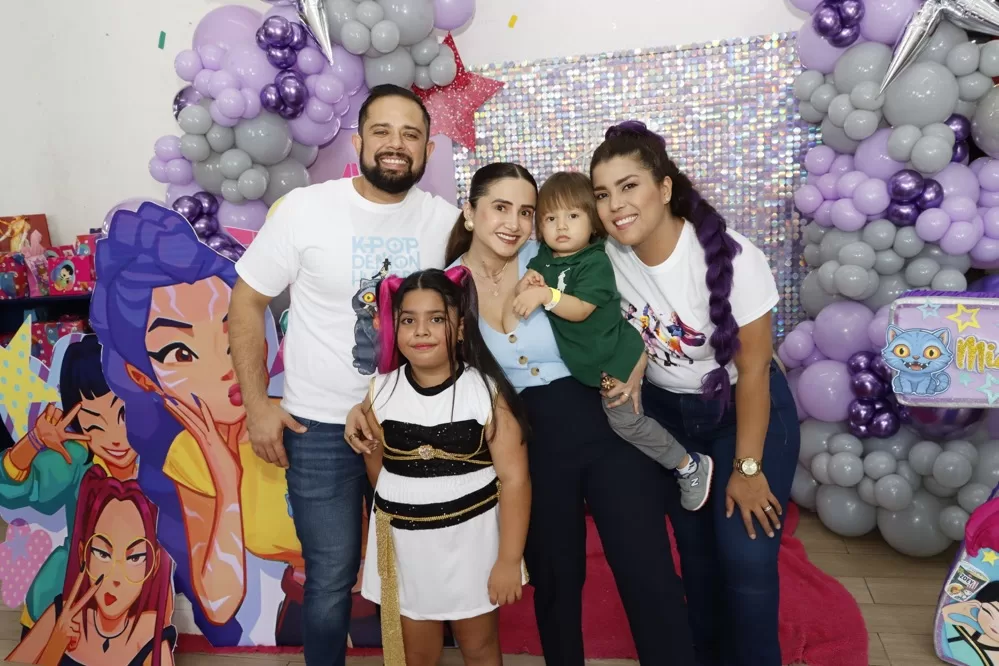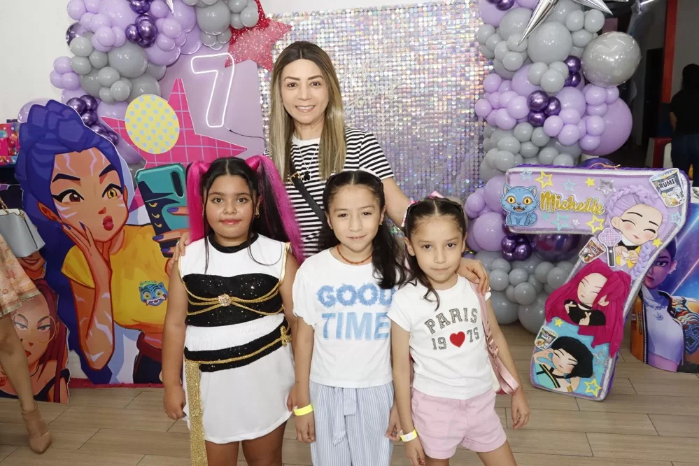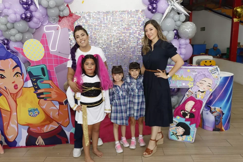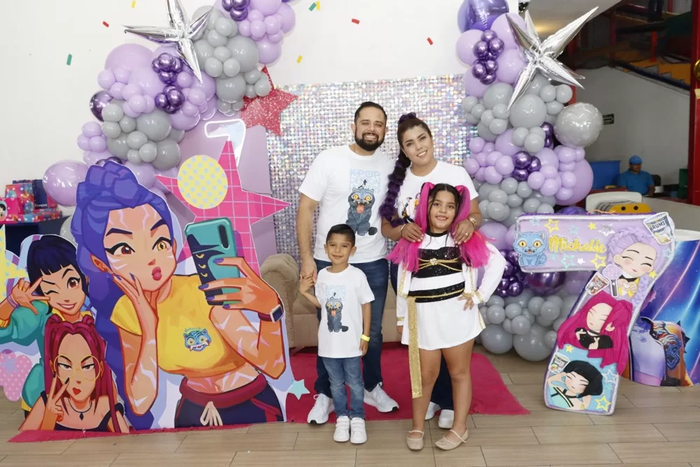 Al estilo de la película animada Las Guerreras del K-Pop, Michelle Marroquín celebró su séptimo cumpleaños rodeada de amigos y familiares en un exclusivo recinto, donde todos disfrutaron de deliciosos bocadillos, golosinas y refrescantes bebidas, además de divertirse con las distintas atracciones preparadas para la ocasión.