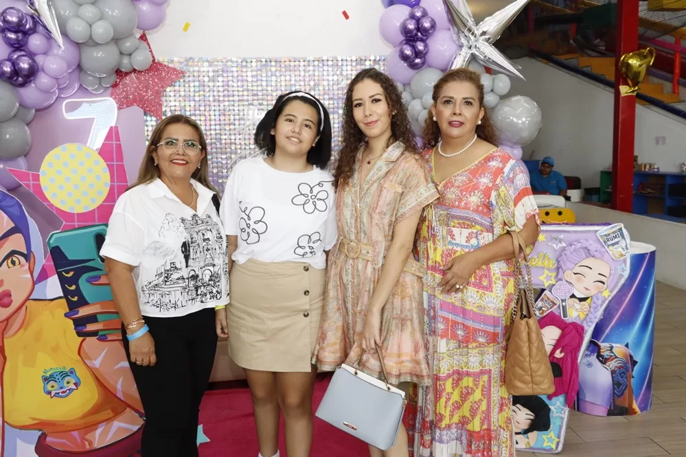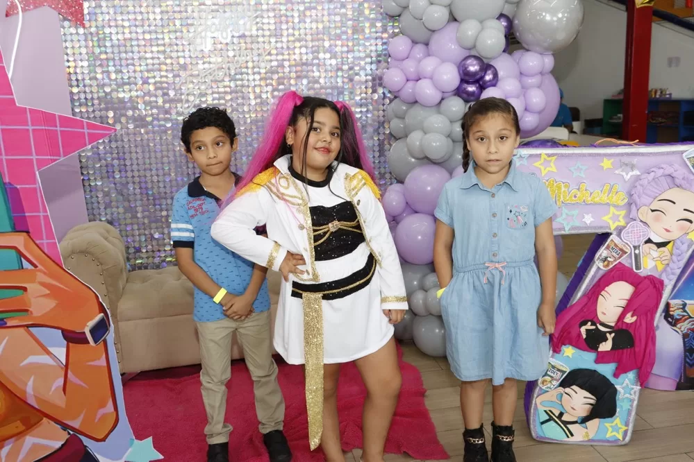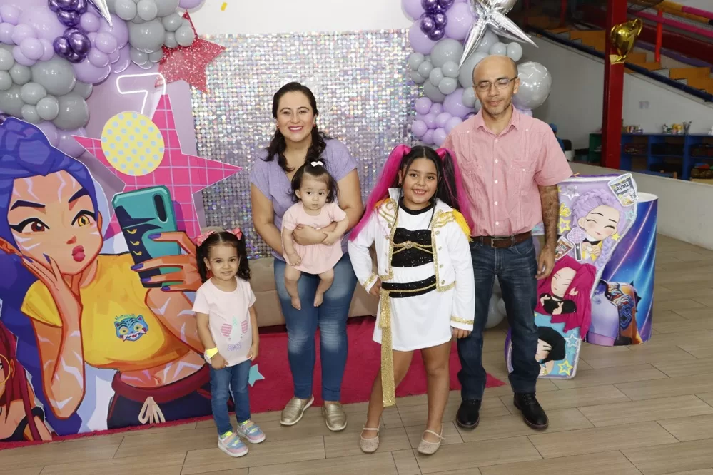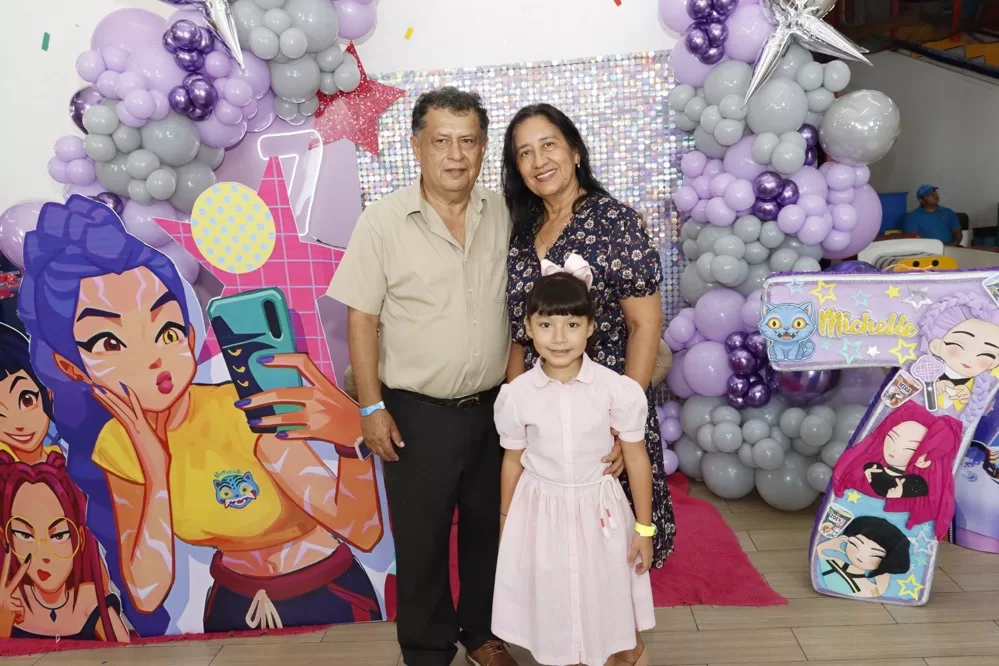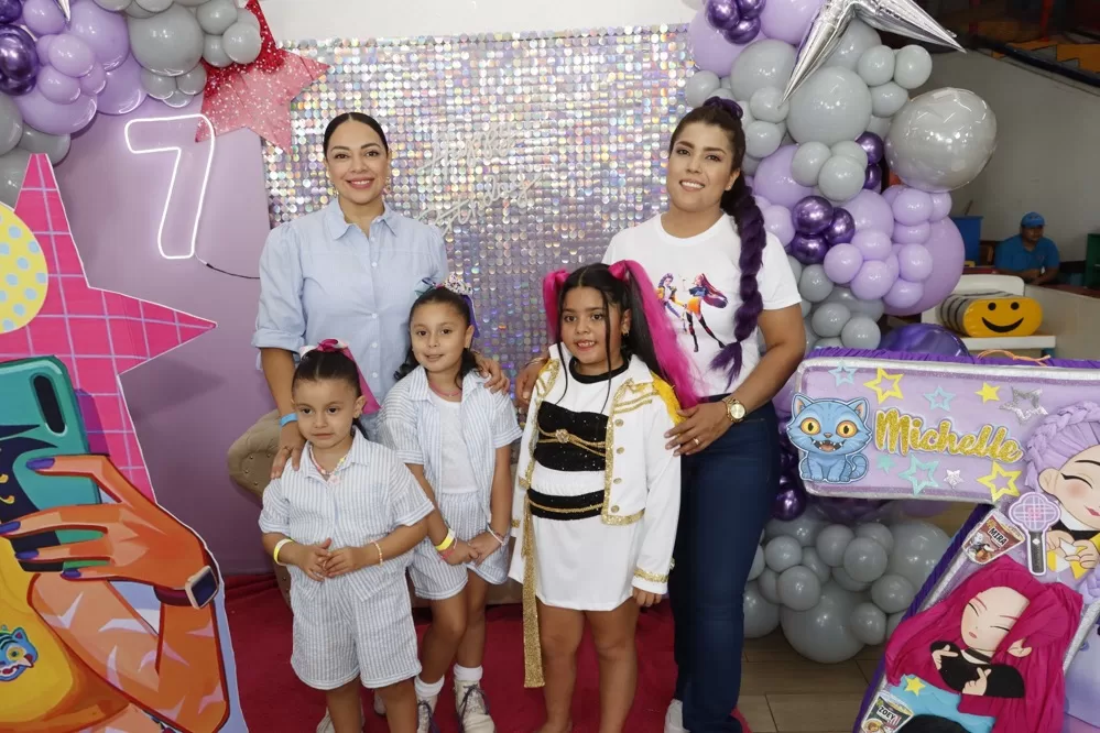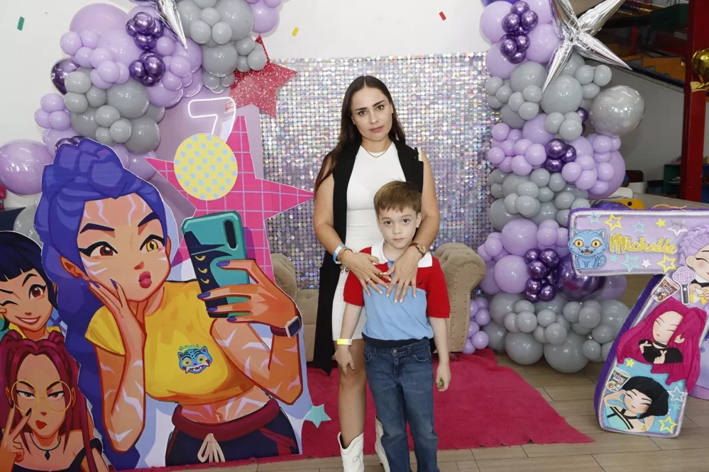 Al estilo de la película animada Las Guerreras del K-Pop, Michelle Marroquín celebró su séptimo cumpleaños rodeada de amigos y familiares en un exclusivo recinto, donde todos disfrutaron de deliciosos bocadillos, golosinas y refrescantes bebidas, además de divertirse con las distintas atracciones preparadas para la ocasión.