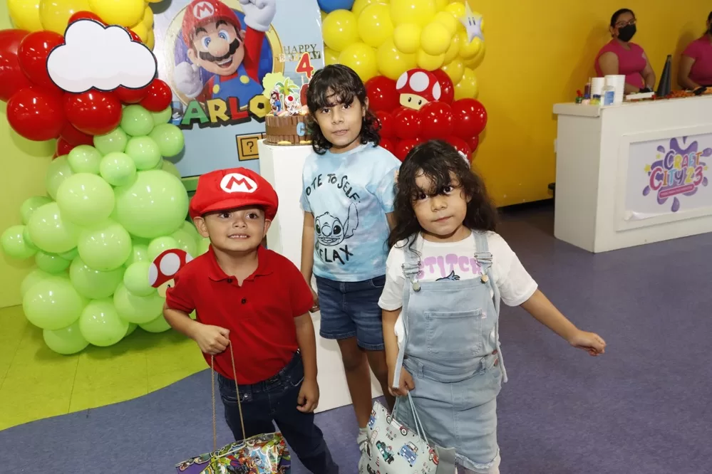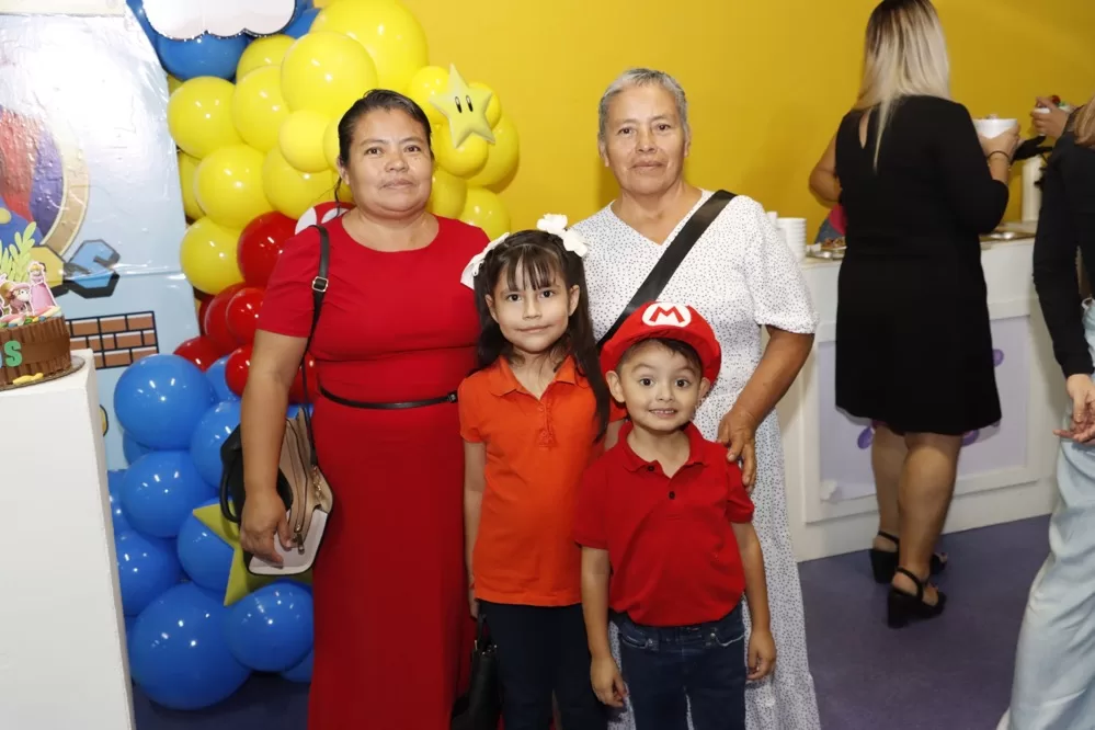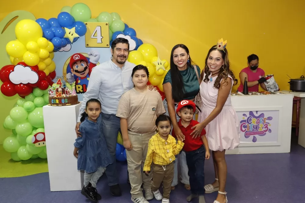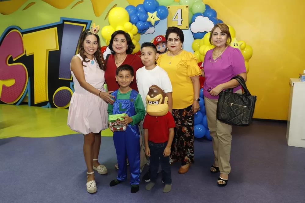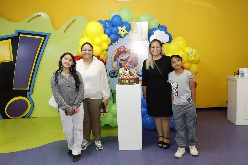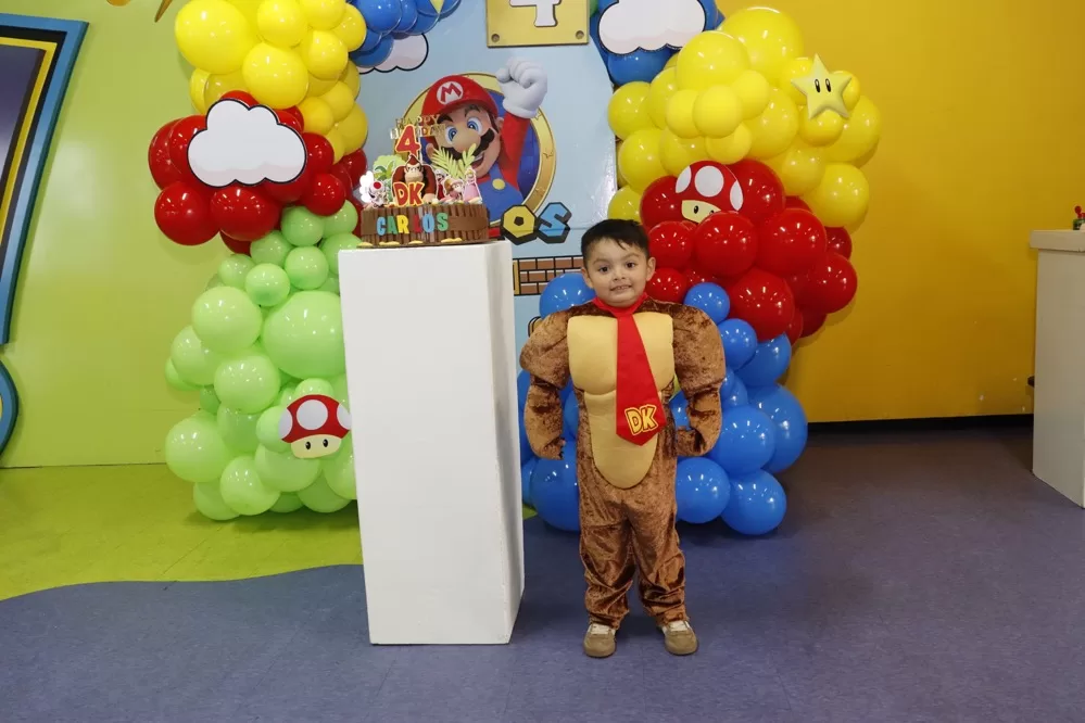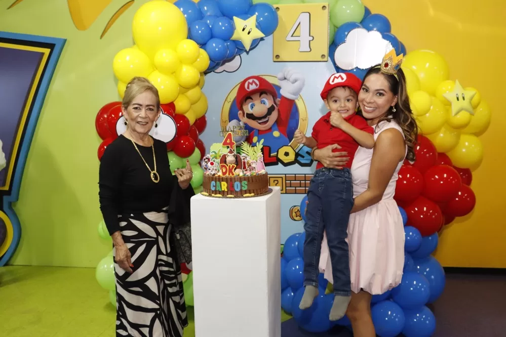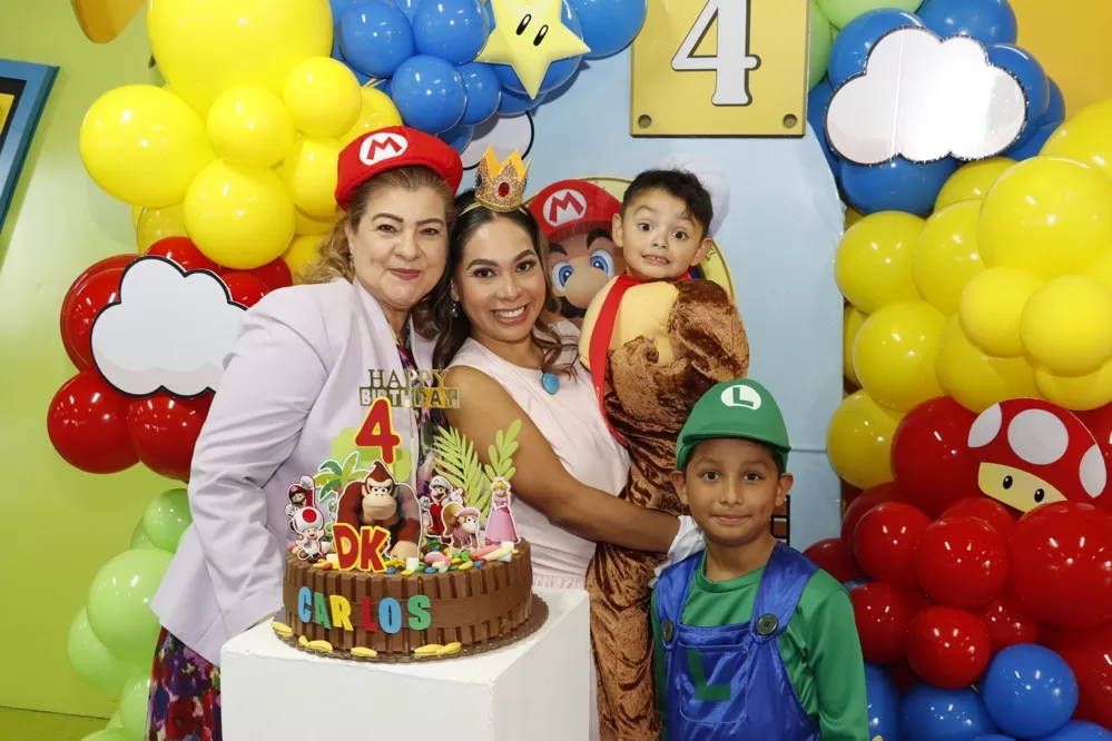 Regalos y fuertes abrazos recibió Carlos Flores en su fiesta de cumpleaños que le organizó su mamá para que se divirtiera jugando con los amigos en las diferentes atracciones del salón «Blast», el cual se decoró con al estilo de su película animada, Donkey Kong. Cómo es tradición todos se reunieron en la mesa donde se encontraba el pastel para cantarle las «mañanitas» al festejada, quien con emoción apagó las velitas de su pastel, y, a la vez, se tomó la fotografía del recuerdo.