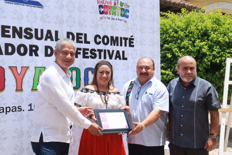 19 de agosto del 2025. Copainalá, Chiapas.- En el marco de la reunión del Comité Organizador de la 7ª edición del Festival Coyatoc, realizada en el municipio de Copainalá, el presidente de la Cámara Nacional de Comercio, Servicios y Turismo de Tuxtla Gutiérrez (Canaco Tuxtla), Miguel Ángel Blas Gutiérrez, presentó los avances de los trabajos preparatorios y destacó que el festival volverá a reunir a grupos culturales, gastronómicos, artesanales y folclóricos en un espacio donde convergen cultura y comercio.