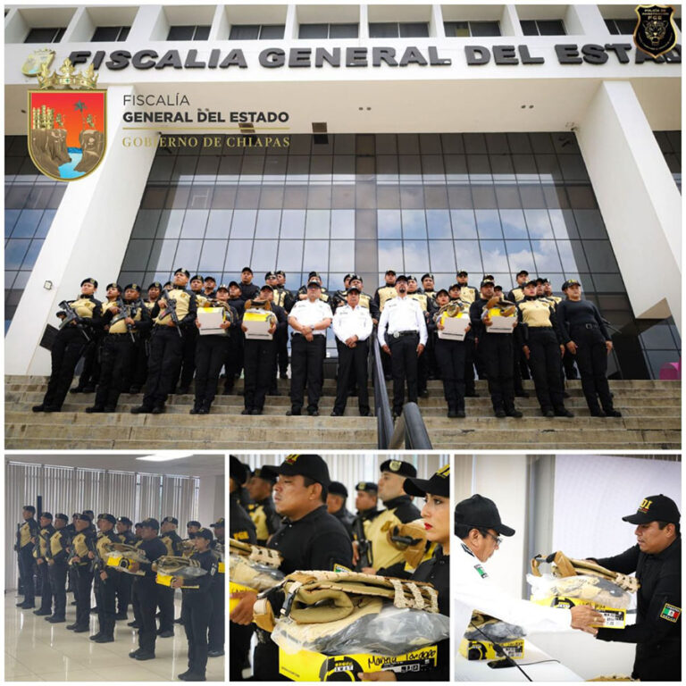 Tuxtla Gutiérrez, Chis., 10 SEP.-La Fiscalía General del Estado llevó a cabo el protocolo de dotación de uniformes para las y los elementos de la Policía de Investigación que participarán en el desfile Cívico Militar del próximo 16 de septiembre del año en curso, en conmemoración al 214 Aniversario de la Independencia de México.