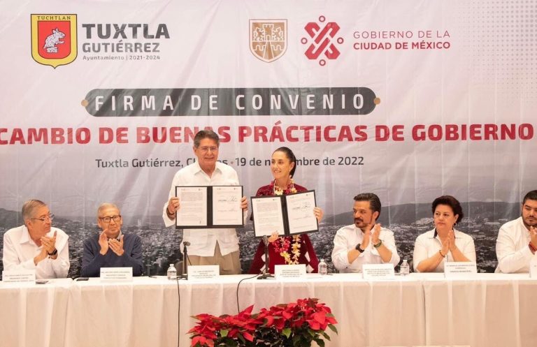 Desde el Palacio Municipal de Tuxtla Gutiérrez, el alcalde Carlos Morales Vázquez signó un convenio de colaboración con la Jefa de Gobierno de la Ciudad de México, Claudia Sheinbaum denominado “Intercambio de buenas prácticas de gobierno” en el cual estuvieron también como testigos el director del Instituto Mexicano del Seguro Social (IMSS), Zoé Robredo y la diputada federal, Patricia Armendáriz.