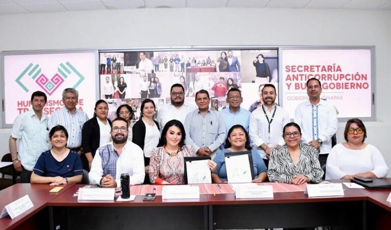 Tuxtla Gutiérrez, Chiapas.– En cumplimiento a las instrucciones del gobernador del estado, Eduardo Ramírez Aguilar, y con el firme propósito de fortalecer la transparencia, la rendición de cuentas y el combate frontal a la corrupción, la Secretaría Anticorrupción y Buen Gobierno (SAyBG) celebró la firma de un convenio de colaboración con el Colegio de Contadores Públicos de San Cristóbal de Las Casas A.C.