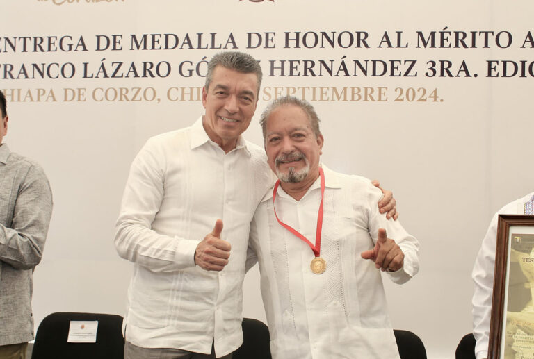 A su vez, el alcalde de Chiapa de Chiapa de Corzo, Leonardo Cuesta Ramos, mencionó que la Medalla Franco Lázaro Gómez fue instituida para reconocer a quienes han sabido conservar la herencia cultural de este municipio, como lo ha hecho la familia Nandayapa Vargas. “La casa de don Alejandrino Nandayapa, ahora Museo de la Marimba de Chiapa de Corzo, ha forjado un camino donde las tradiciones siguen vivas y resuenan con fuerza”, resaltó.