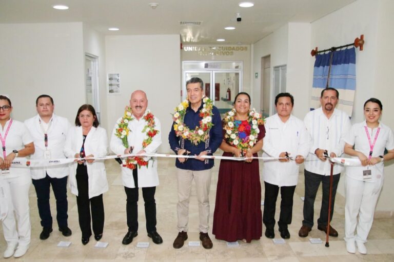 Como parte de las acciones para el fortalecimiento a los servicios hospitalarios de Chiapas, el gobernador Rutilio Escandón Cadenas inauguró la Unidad de Cuidados Intensivos del Hospital General del municipio de Reforma, donde refrendó su compromiso de seguir transformado los servicios de salud e invertir hasta donde sea posible para que las unidades médicas de la entidad cuenten con la capacidad resolutiva eficiente, oportuna y cercana a la gente.