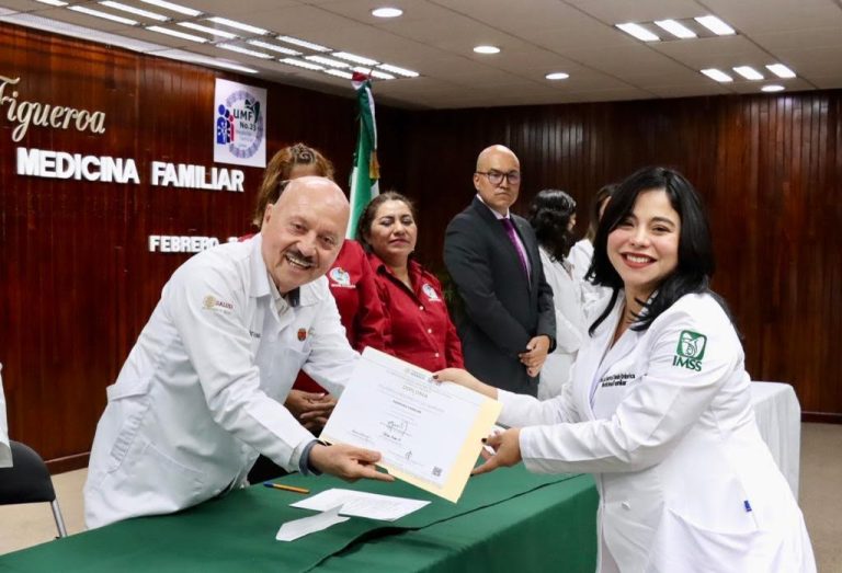 En ese mismo acto, el titular de la Secretaría de Salud estatal, doctor Pepe Cruz, entregó un reconocimiento por el esfuerzo de los residentes en medicina familiar, obteniendo mención honorífica la alumna Janeth Olivares Becerril, quien destacó por su alto servicio y desempeño académico.