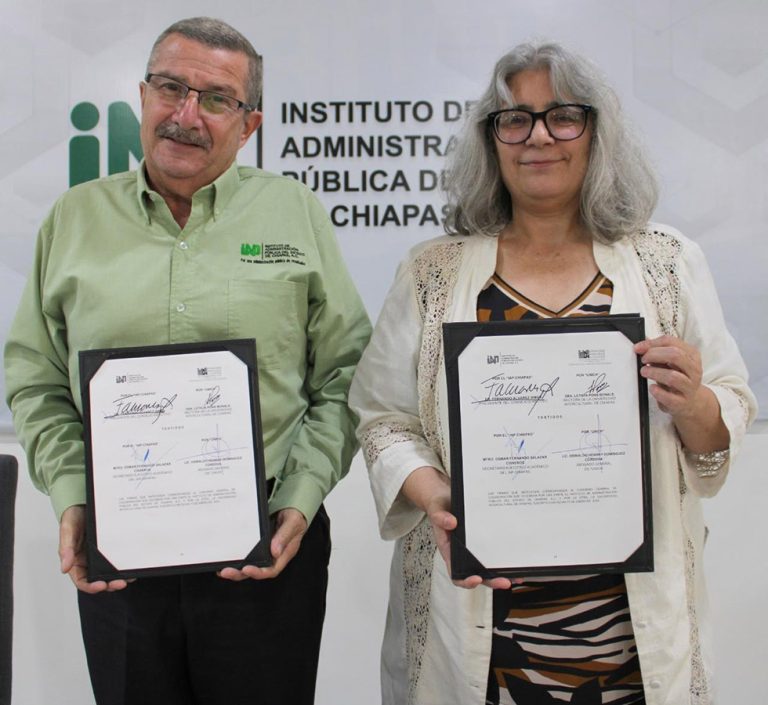 Tuxtla Gutiérrez, Chiapas; martes 17 de enero de 2023.- El presidente del Instituto de Administración Pública de Chiapas, Dr. Fernando Álvarez Simán y la Dra. Leticia Pons Bonals, Rectora de la Universidad Intercultural de Chiapas (UNICH), suscribieron convenio de colaboración para para emprender acciones e iniciativas conjuntas.